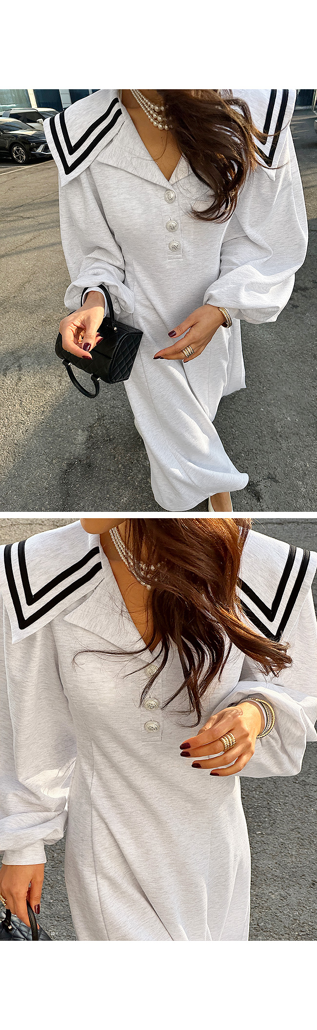 와이드하게 더해진 세일러 카라 디자인이