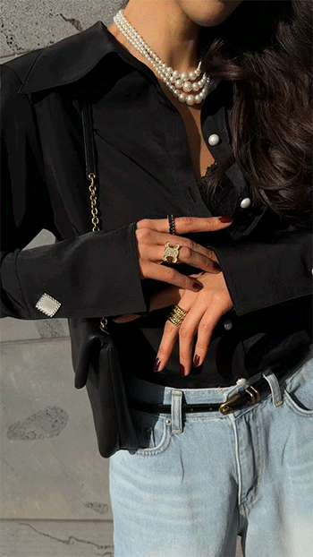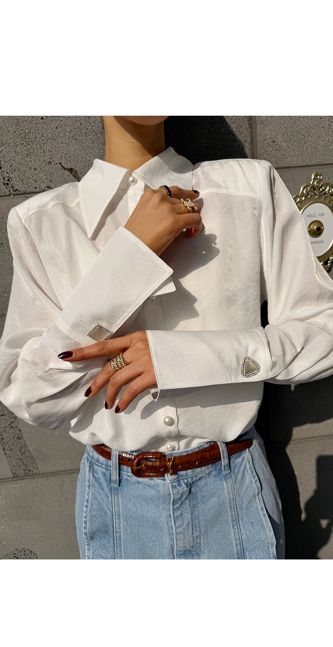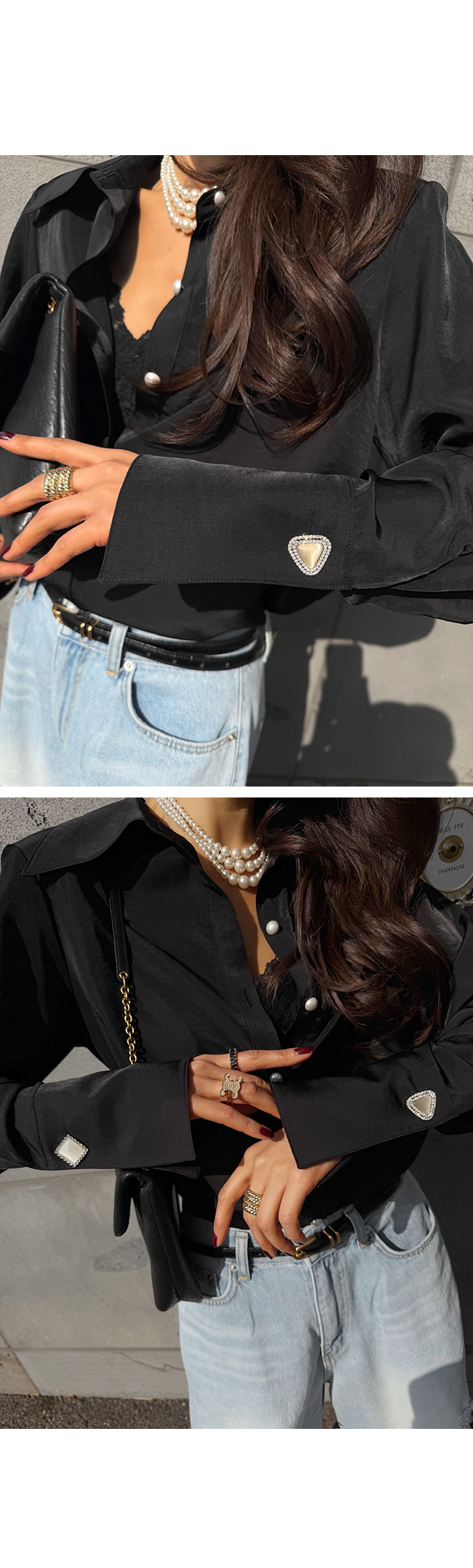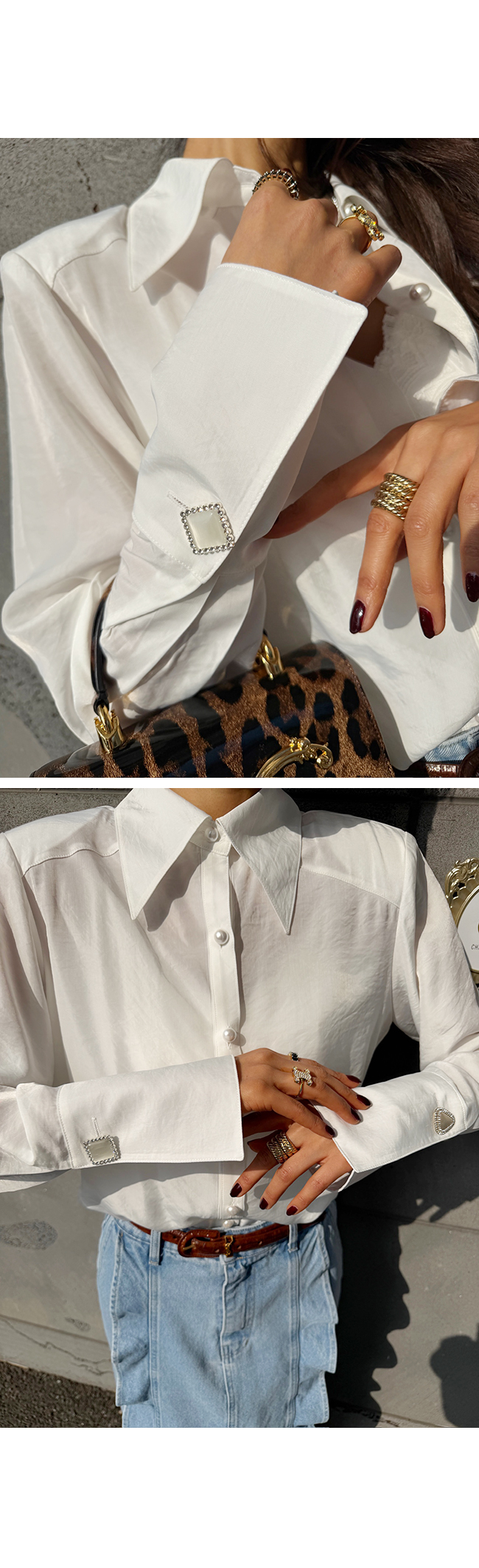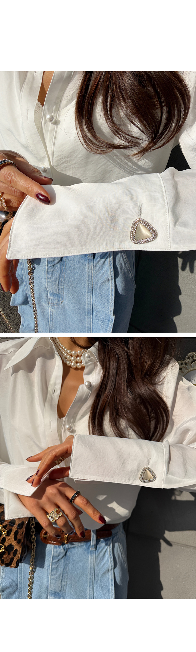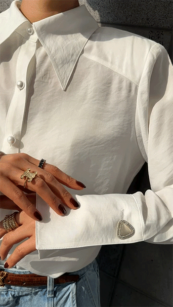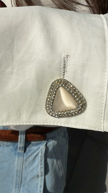 소매 끝단에는 주얼리 버튼 디테일을 더해