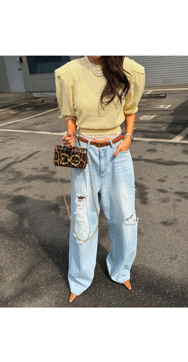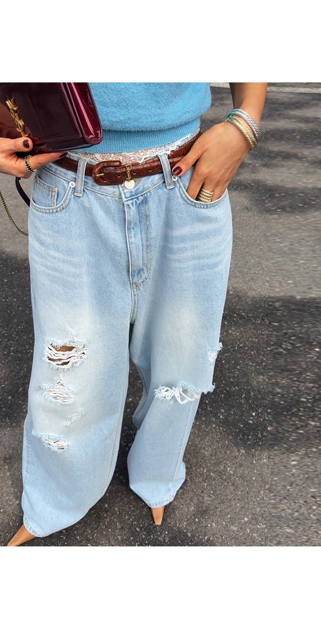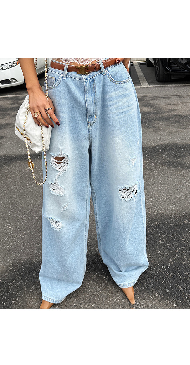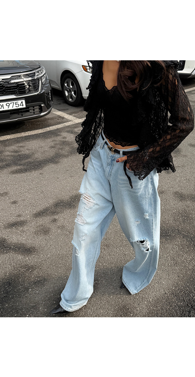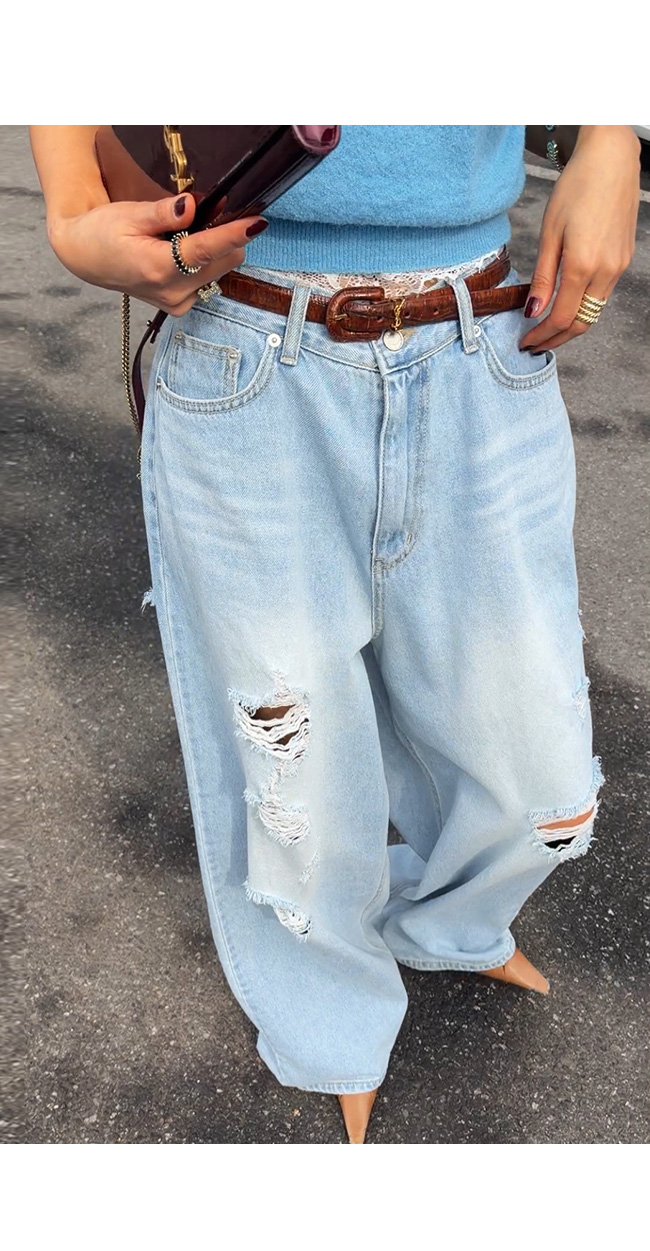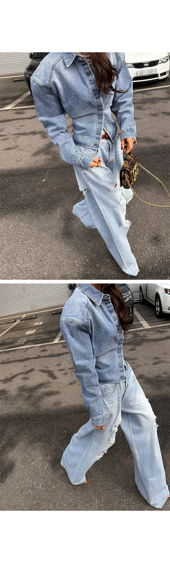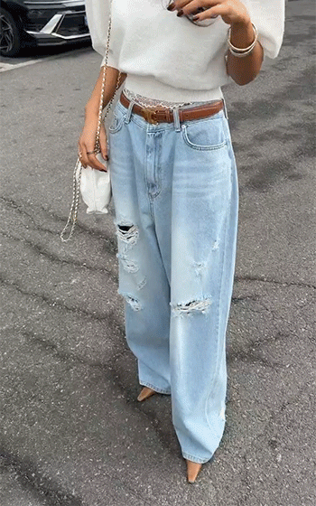 과하지 않게 들어간 워싱과 데미지 디테일이 어우러져
