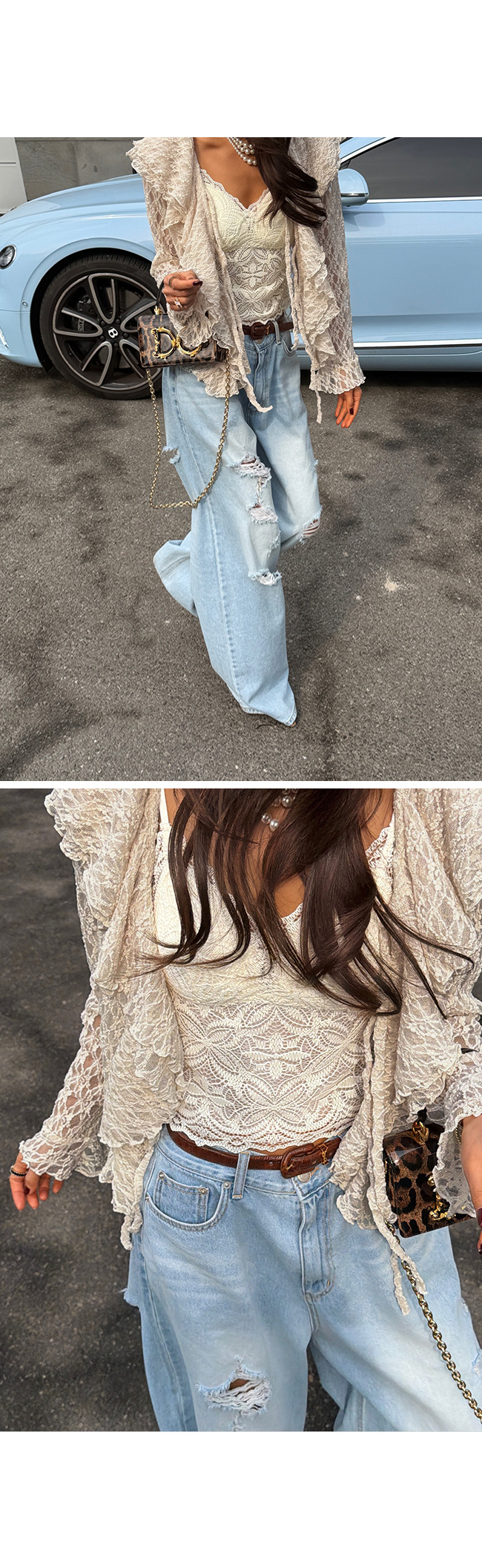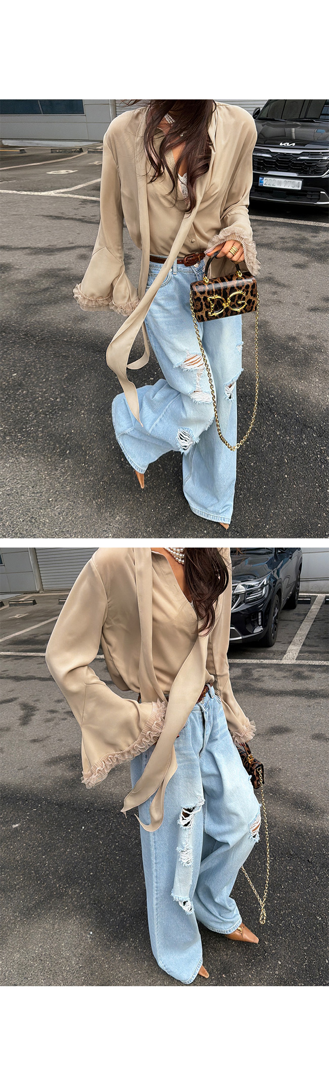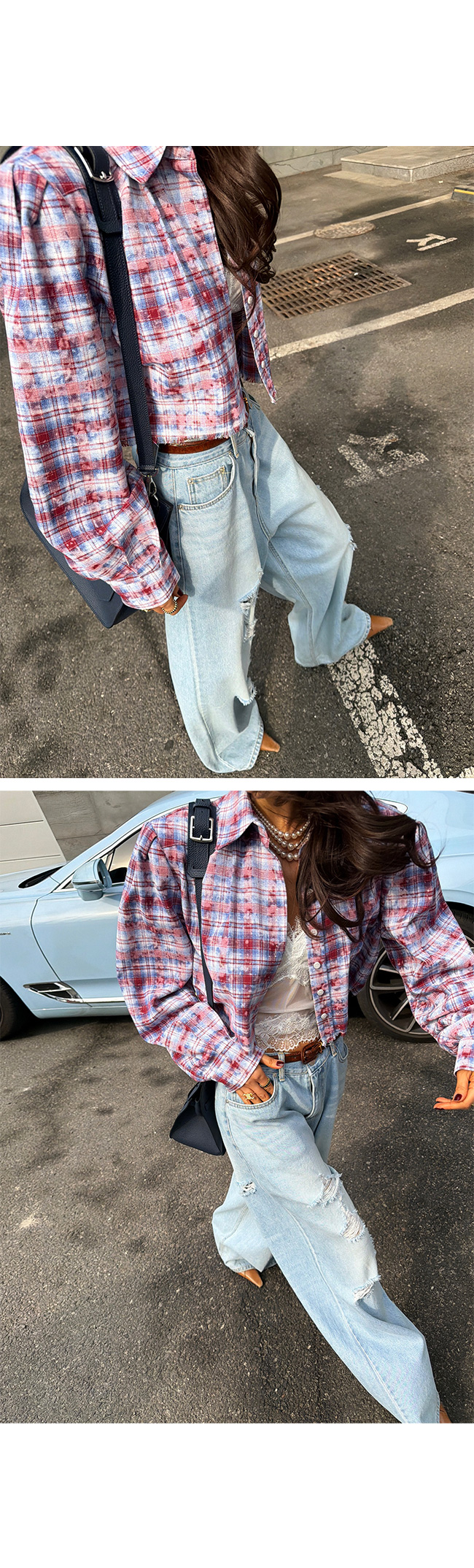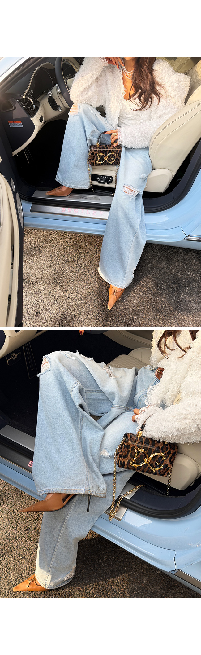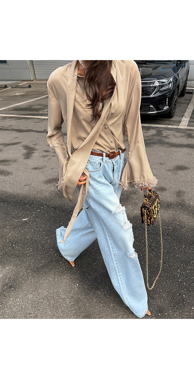 과하지 않게 들어간 워싱과 데미지 디테일이 어우러져