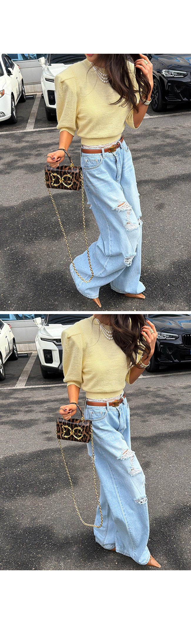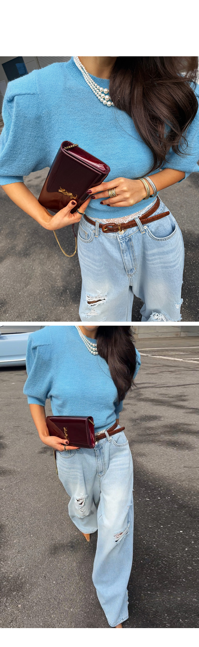 데님 하나만으로도 스타일리시한 룩을 완성해준답니다.