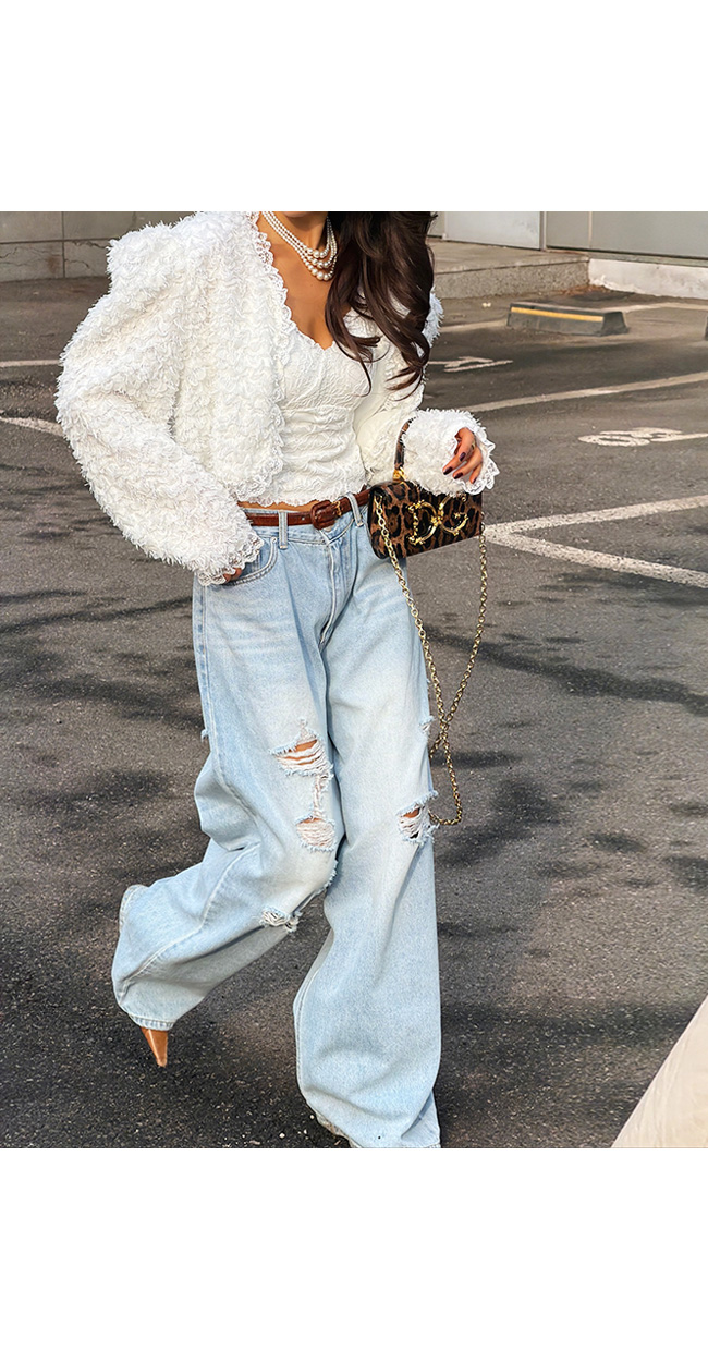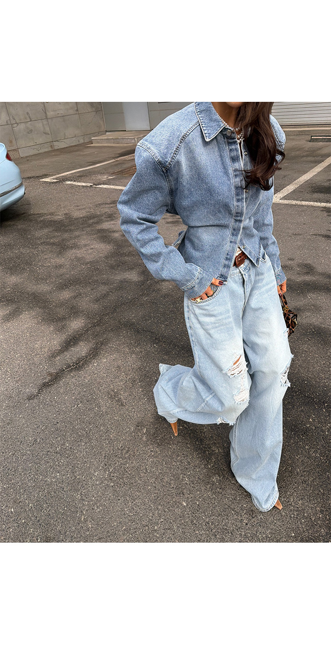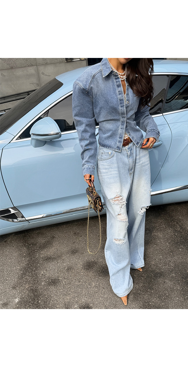 연한 라이트 블루 워싱이 더해진 데님 소재로