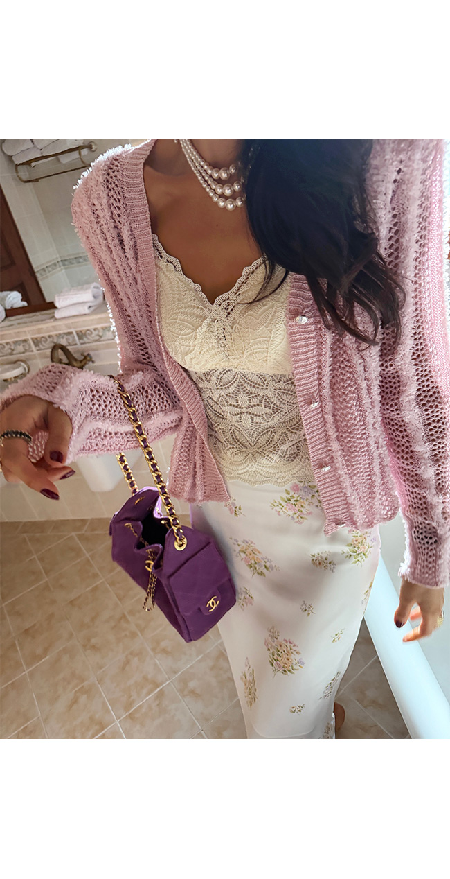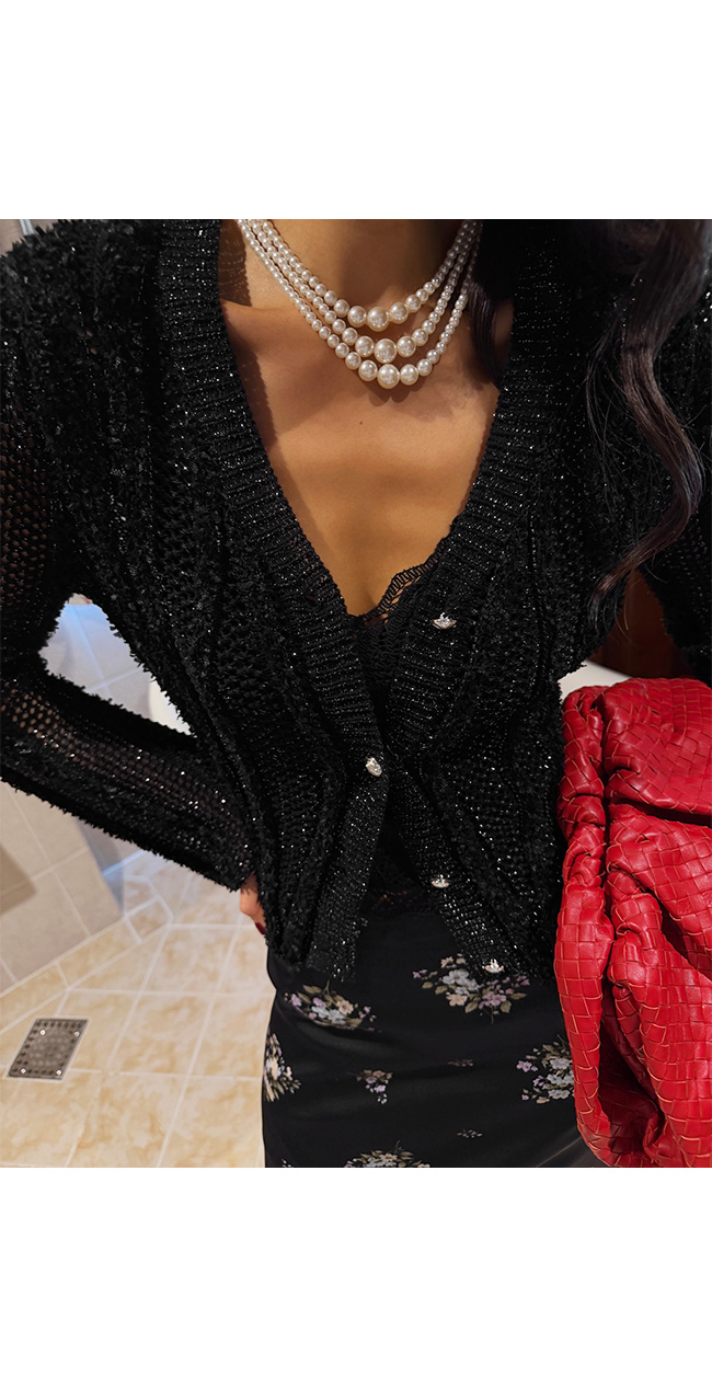 소매와 바디 부분의 성글한 짜임이 은은한 비침을 연출해