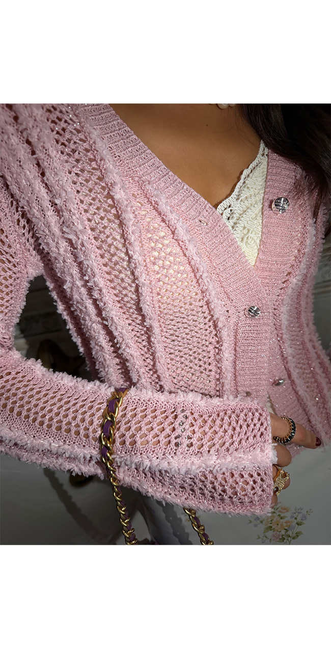 성글한 짜임의 니트 조직에 펄사가 더해져