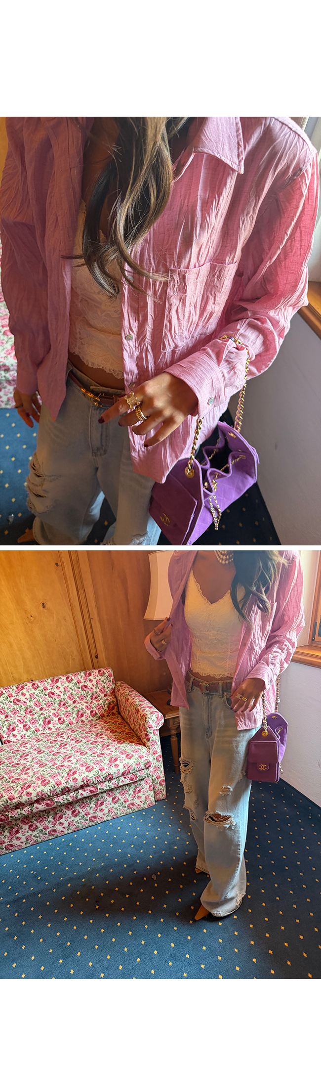 - 하루,이틀정도 포장되어진 상태에서 배송 되다 보니 옷에 구김이 있을 수 있습니다. 구김이 많이 간 상품은 한번 다림질 후 입어주세요.