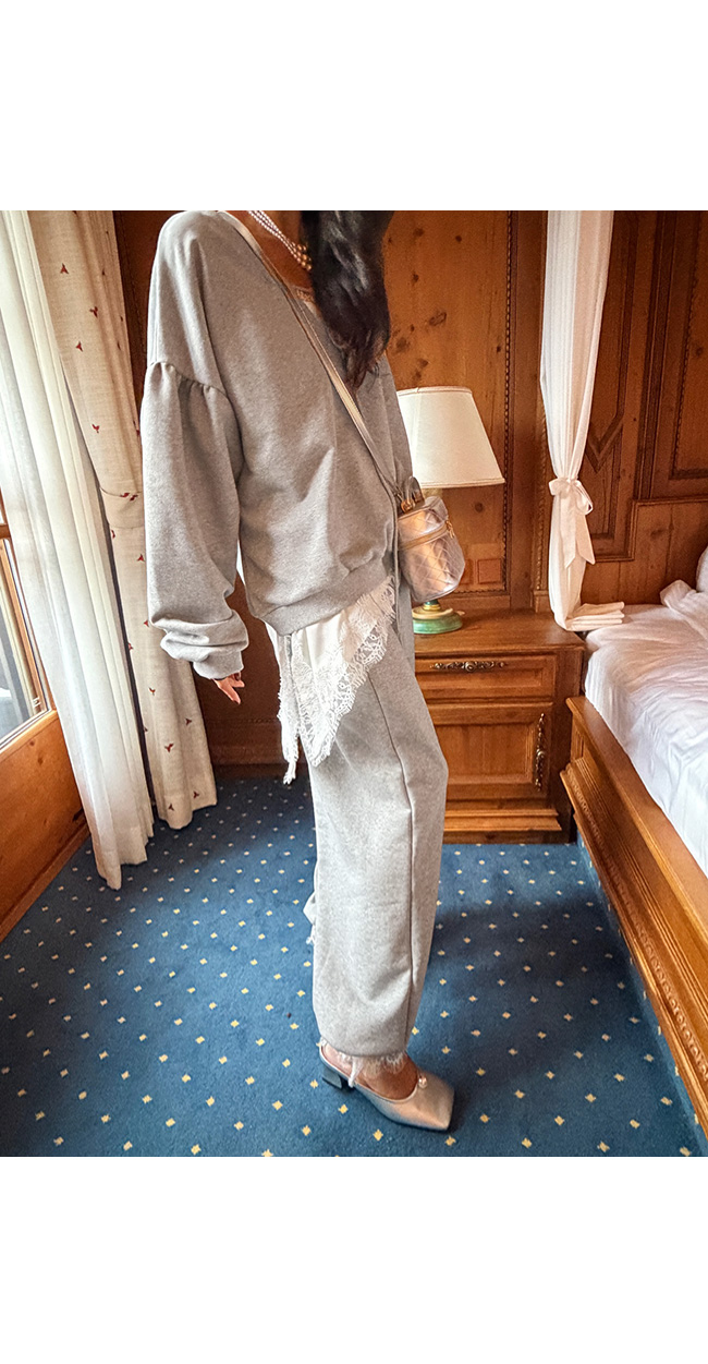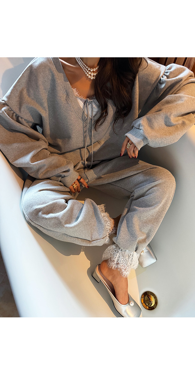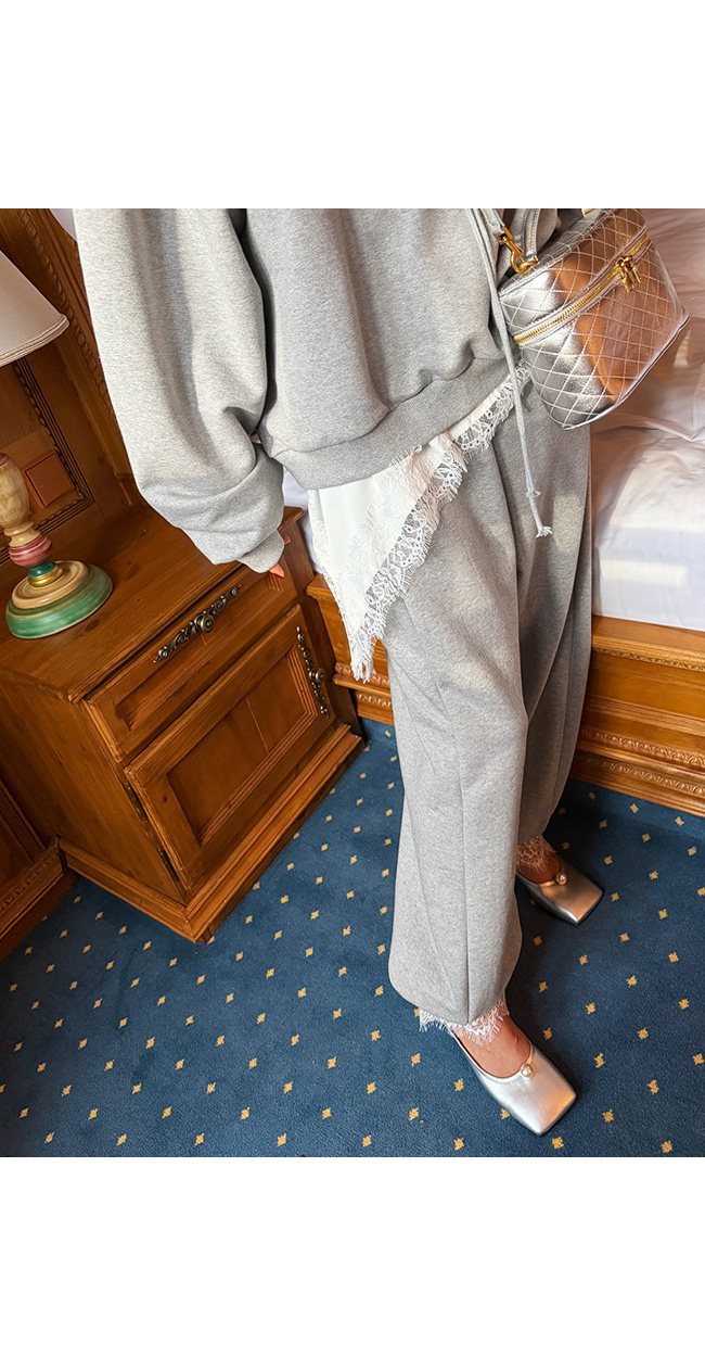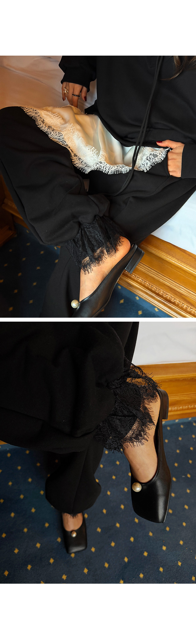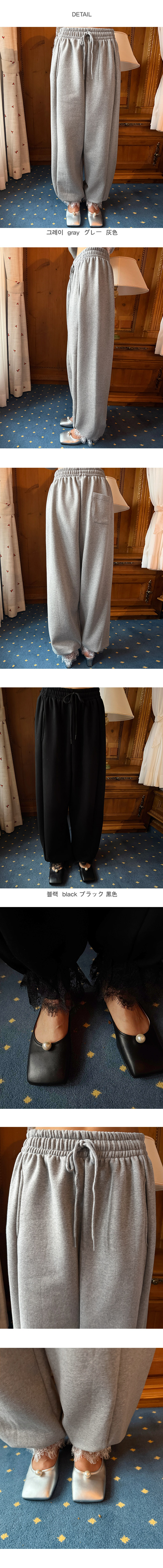 베이직한 조거 팬츠에 레이스 포인트를 더해