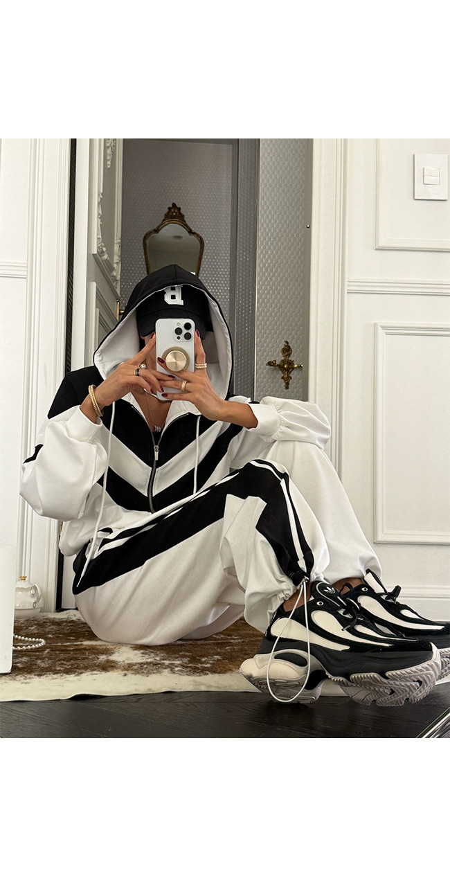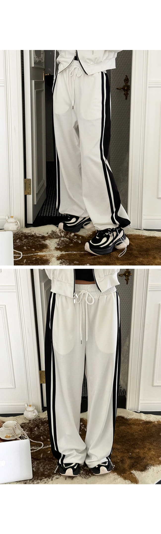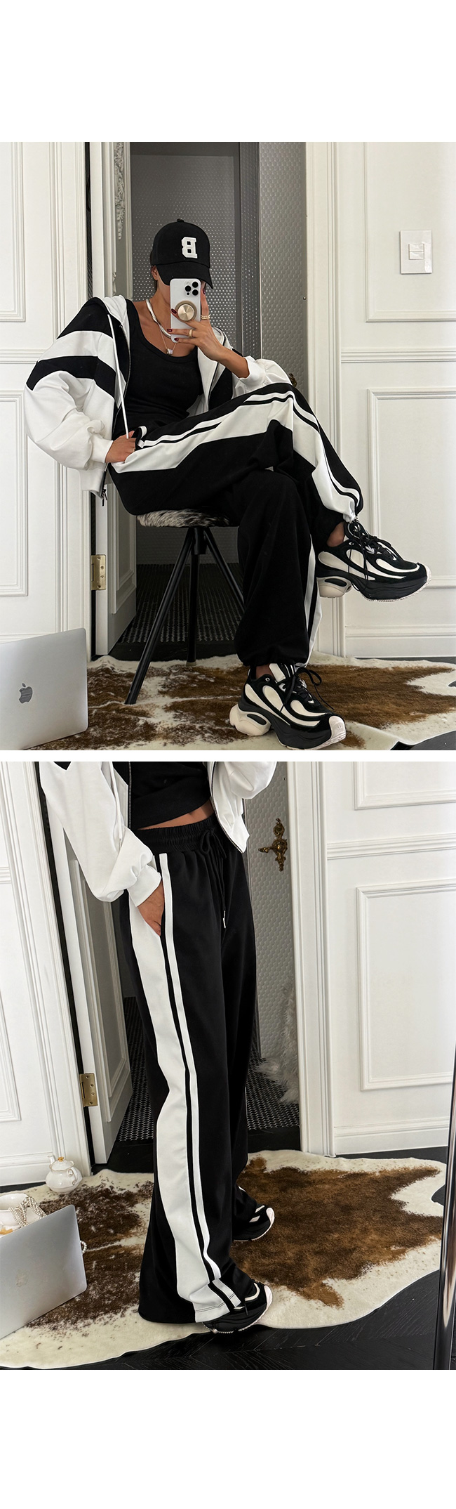 숄더 라인과 바디를 따라 더해진 배색 라인 디테일이