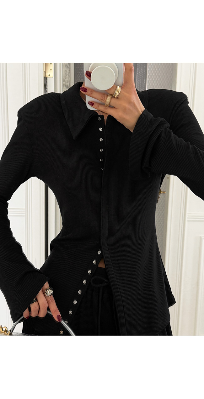프론트 버튼 디테일이 은은한 포인트가 되어