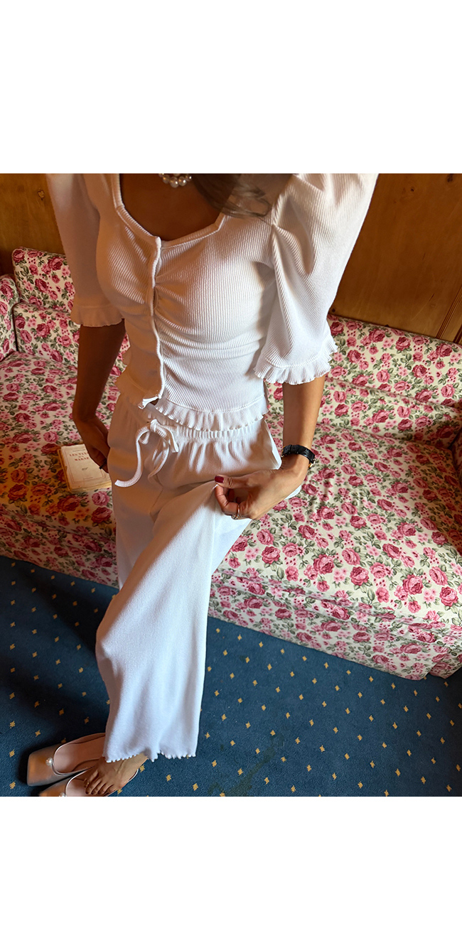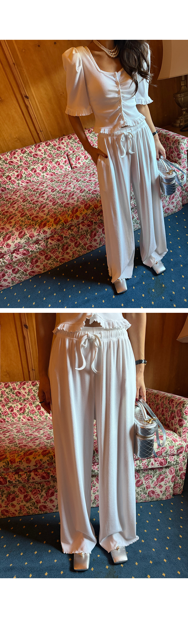 허리 전체 밴딩 디자인에 스트링 디테일을 더해