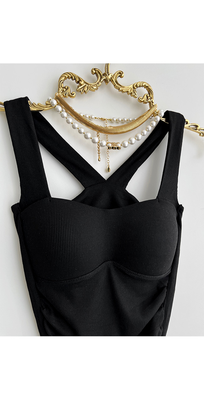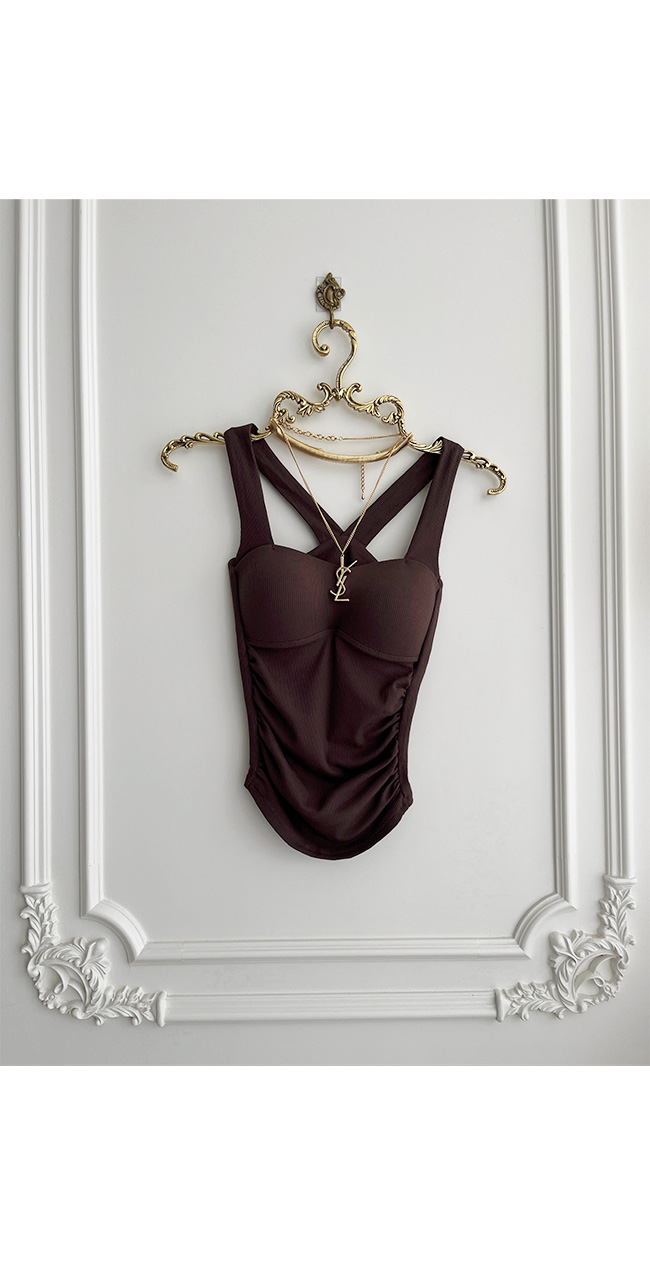 와이드한 스트랩과 백라인 크로스 디테일이 더해져