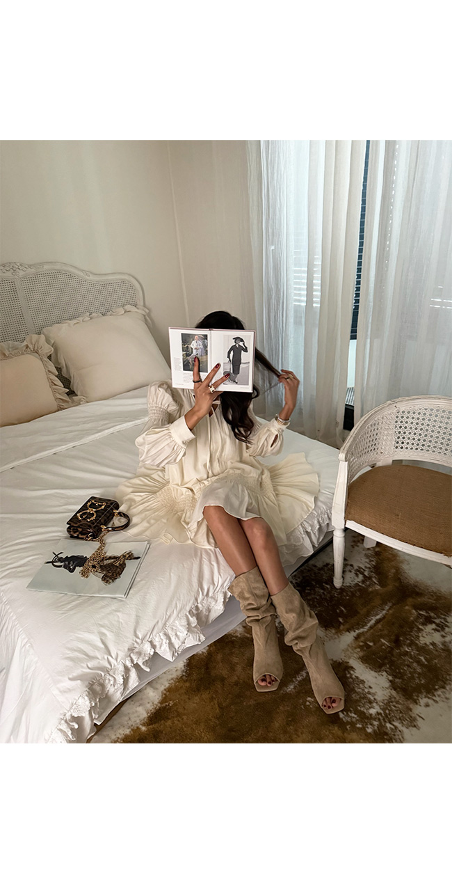 -셔링 디테일로 스타일리시한 무드