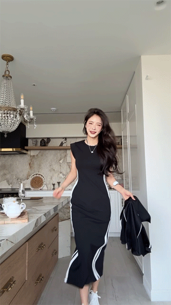 롱한 기장감에 백라인 슬릿 디테일로 활동성까지 챙겨주었으며,