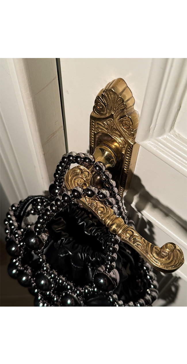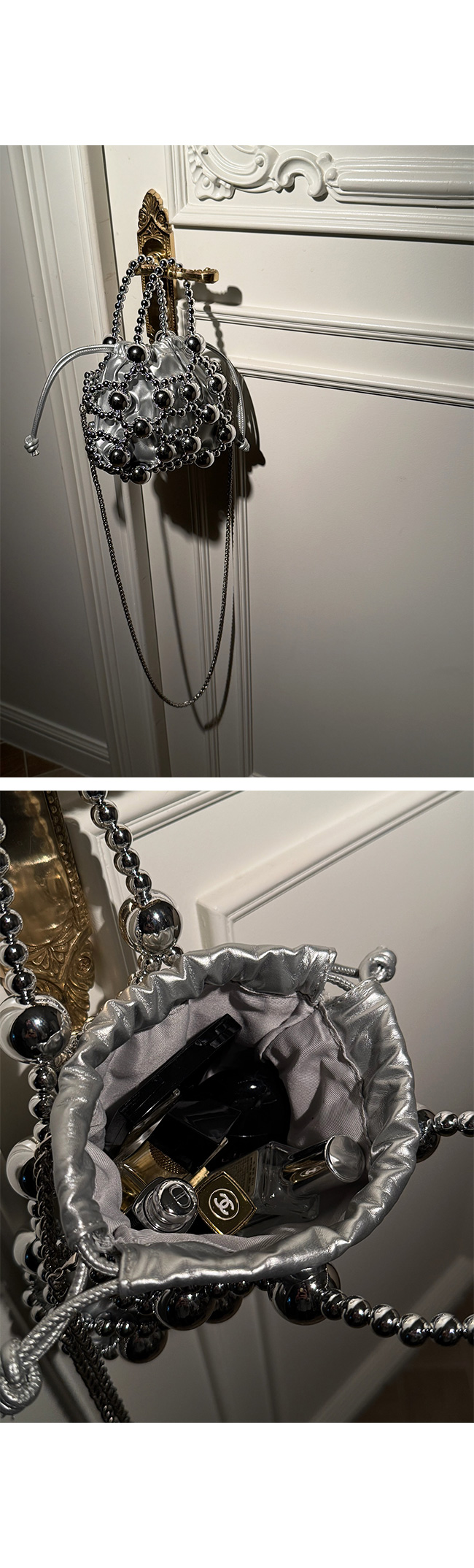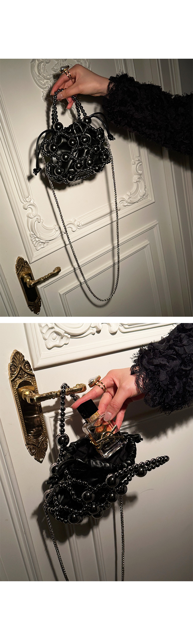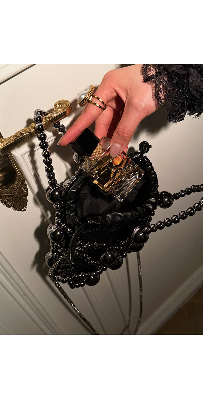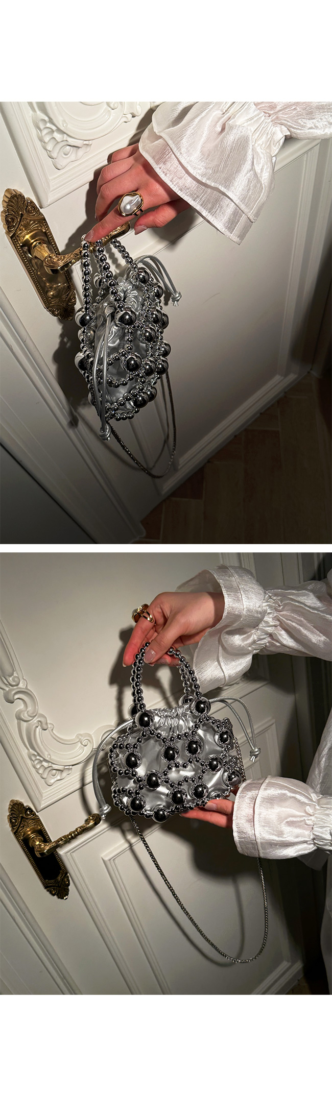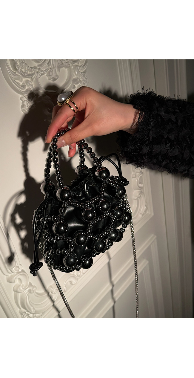 입체감 있는 볼드한 비즈 장식이 전체적으로 더해져
