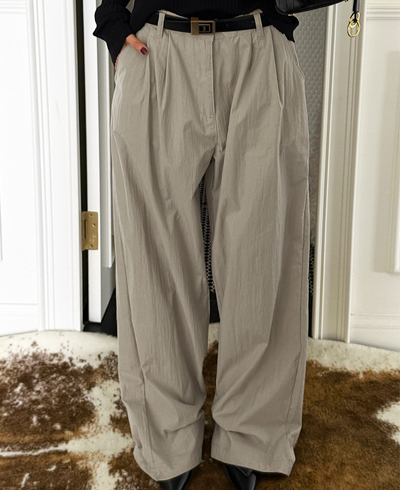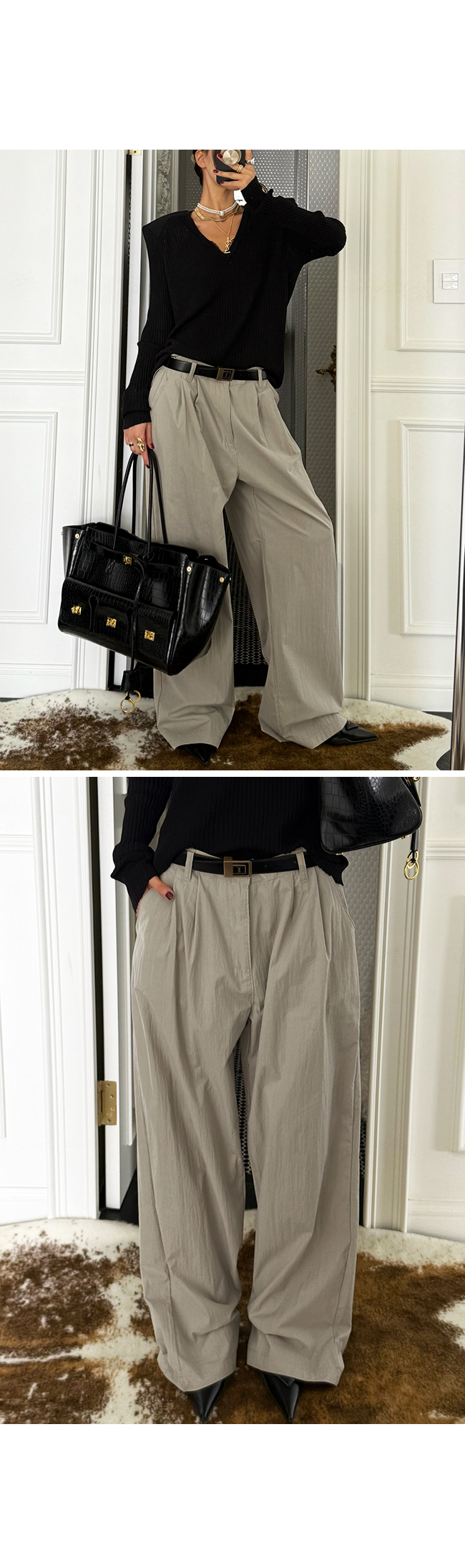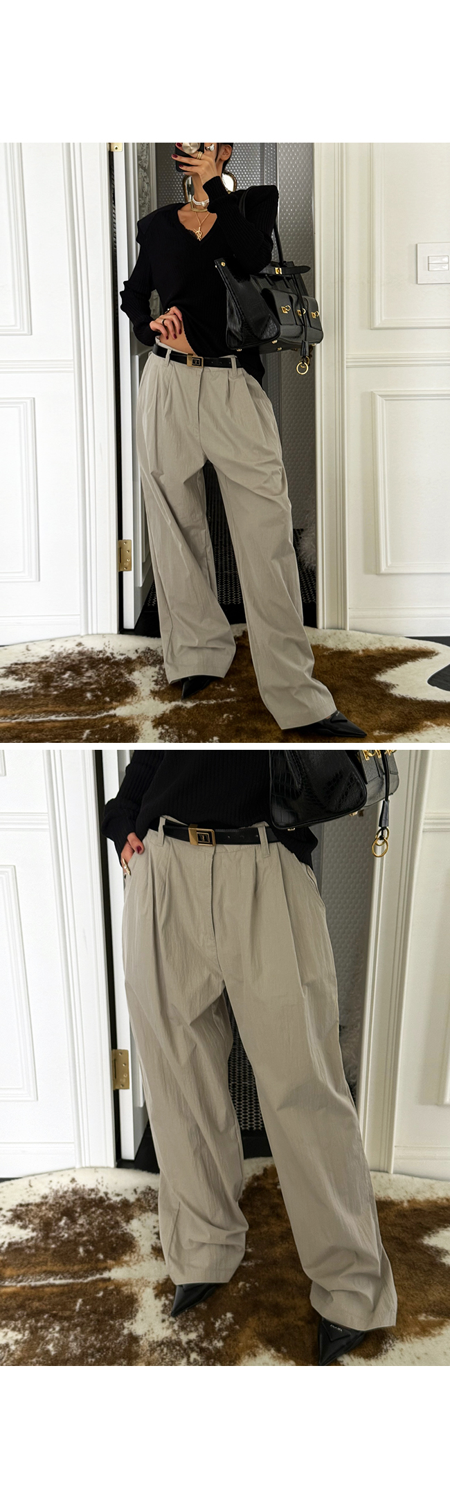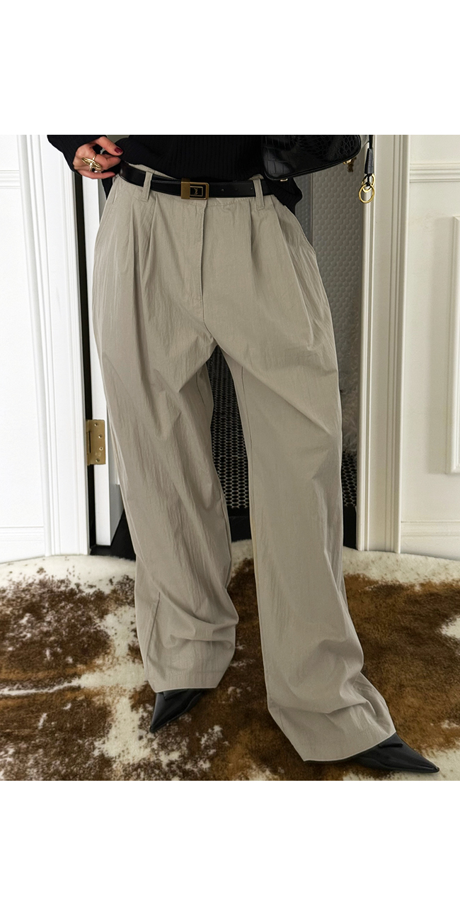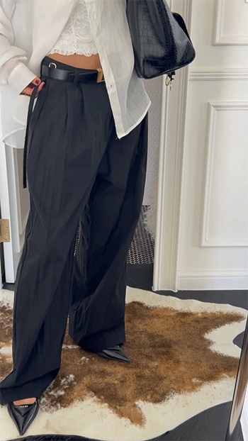 앞 핀턱 디테일이 더해져 허리는 안정감 있게 잡아주고,