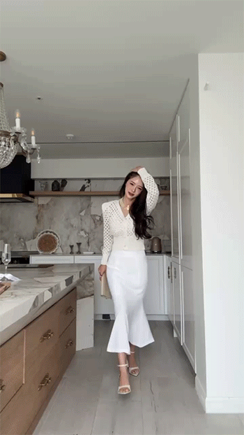 브이넥 라인은 목선과 쇄골을 길고 슬림하게 보여주고,