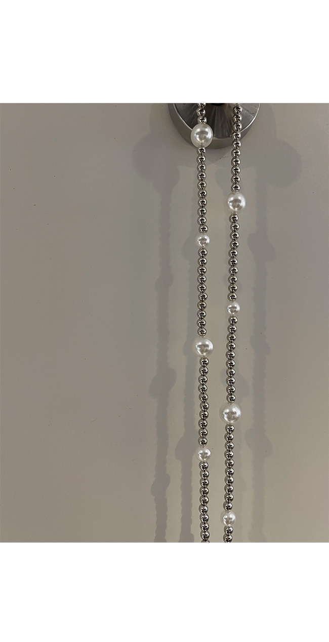 슬림한 실버 비즈 체인에 다양한 사이즈의 진주를 믹스해