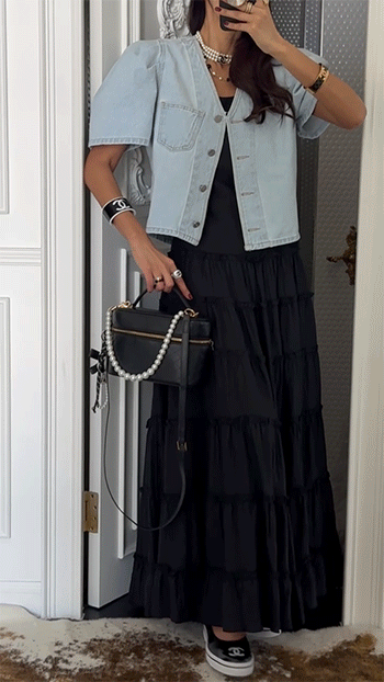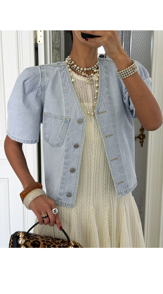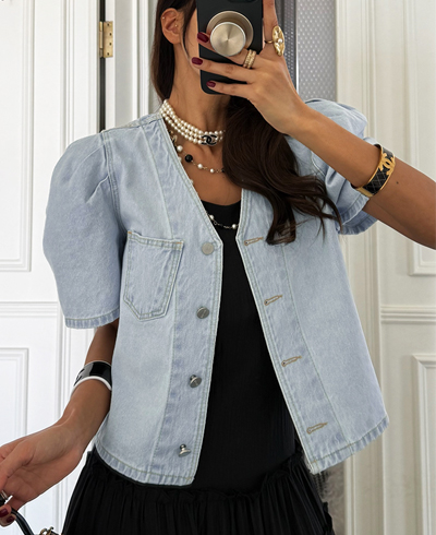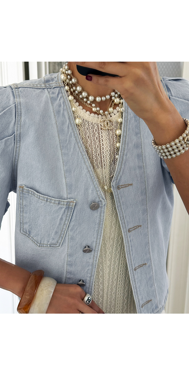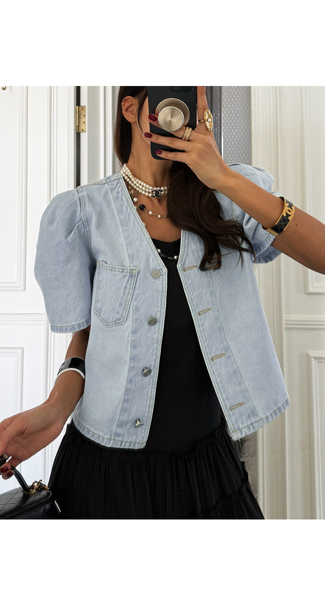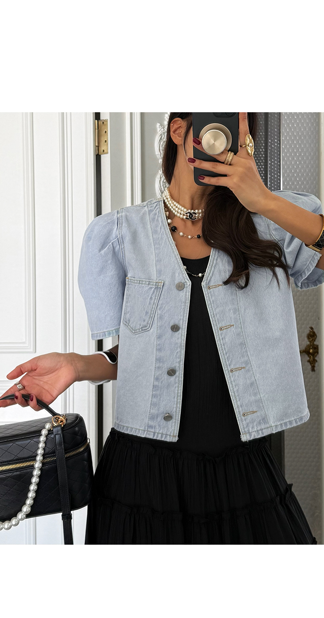 퍼프 노카라 데님 자켓 소개해드릴게요.